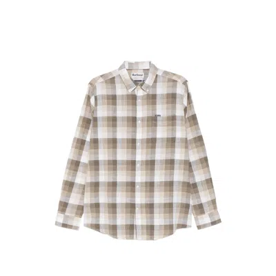 beige check pattern button fastening patch pocket long sleeves logo patch