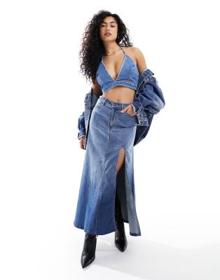 Denim Maxi Skirt With Split In Blue - Part Of A Set