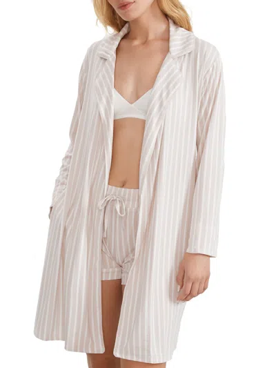 BARE Cool Jade Piped Robe In Ecru Stripe