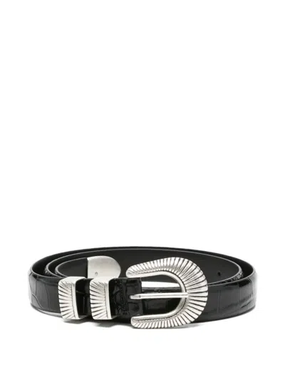 black crocodile-effect embossed texture silver-tone hardware engraved buckle fastening two engraved belt loops engraved metal tip This piece comes complete with a protective dust bag.