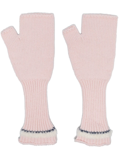 fingerless knit gloves from BARRIE featuring fingerless design, ribbed detailing, contrasting trim, light pink and cashmere.