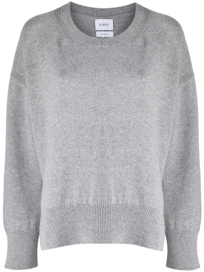 Grey cashmere Iconic cashmere pullover from BARRIE featuring fine knit, side slits, round neck and long sleeves.