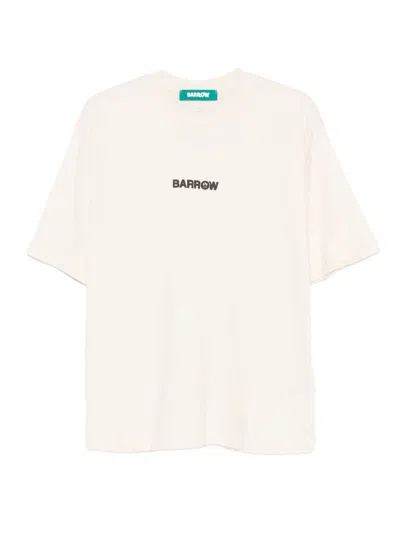 Barrow T-shirt made of cream-colored cotton. Ribbed crew neck. Short sleeves. Contrasting logo lettering printed on the front. Oversized bear print and contrasting logo lettering on the back. 100% cotton