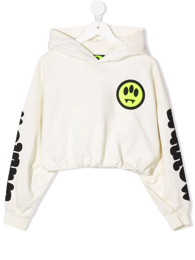 Off-white cotton logo-print pullover hoodie from Barrow kids featuring smiley face print, logo print at the sleeve, classic hood and pullover design.