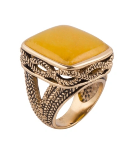 A large smooth yellow quartz stone is surrounded by richly detailed bronze in a rope pattern. Jewelry & Watches Fashion Jewelry - Rings