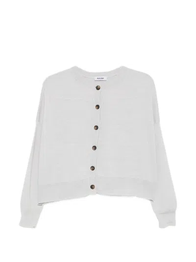 grey button fastening round neck ribbed hem long sleeves ribbed cuffs