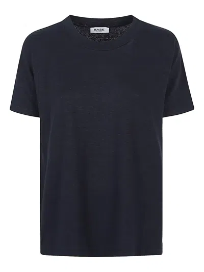 BASE Crew-neck Linen T-shirt In Blue