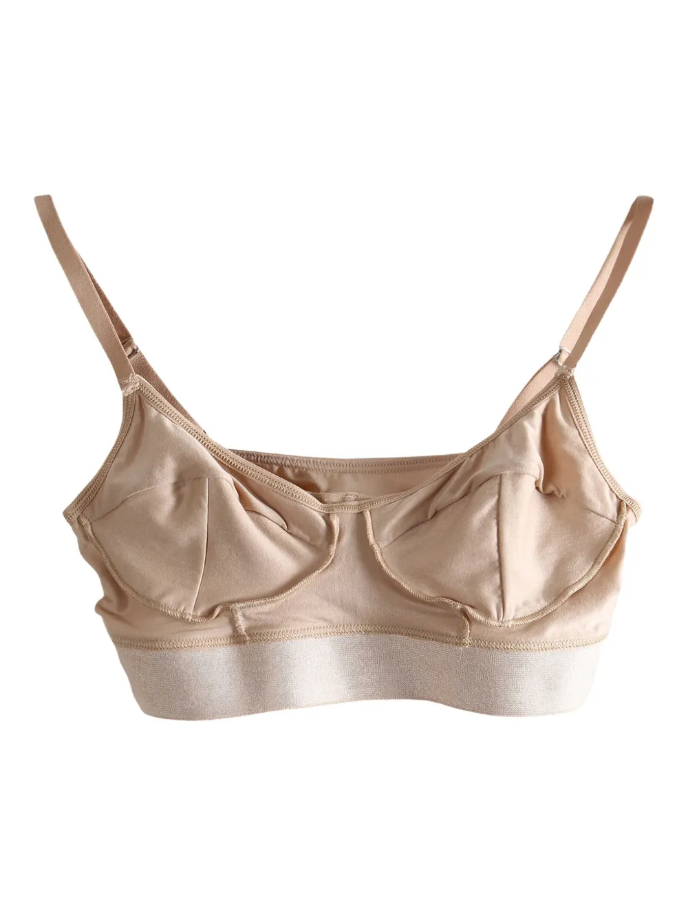 light brown panelled design adjustable straps Just a reminder that this piece must be tried on over your own garments.