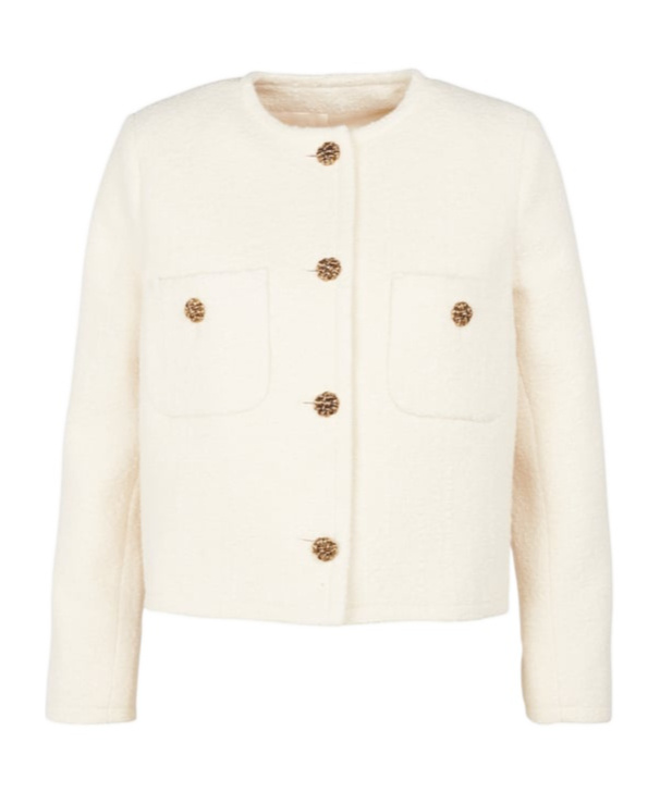 Round neck, long sleeves, button closure, decorative buttons, 2 button stickers pockets.