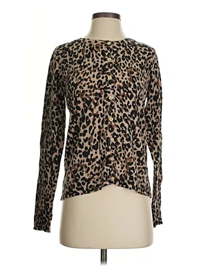 Basic Editions Pullover Sweater, Size: Small. Item Details: Brown, Animal Print Pattern, Keyhole Neckline, Long Sleeve, Women's Tops