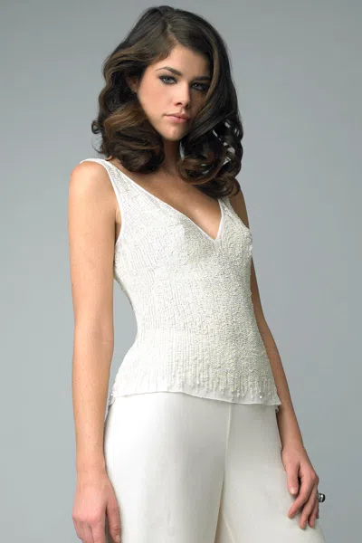 BASIX BLACK LABEL Sequined V Neck Top In White