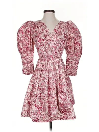 Batsheva Cocktail Dress, Size: 2. Item Details: Pink, Paisley Pattern, V Neck, Short Length, 3/4 Sleeve, Women's Dresses, 100% Cotton
