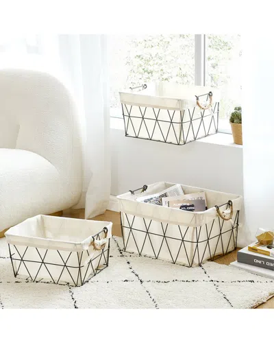 Color/Finish: Gun Metal This Set Of Three Lined Tapered Rectangle Bins With Fold Down Binded Jute Handles Are The Perfect Combination Of Style And Function. This Set Of Three Lined Rectangular Bins Are Constructed Of Durable Wire And Feature A Removable Washable Liner To Keep All Your Possessions Safe. The Reenforced Fold-Down Rope Handles Provide Easy Access To Anything You Need To Store Throughout Your Home. Measurements: Large - 17In X 13In X 9.1In (11.8In To Handle) Medium - 15.5In X 11.5In X 8.1In (10.4In To Handle) Small - 14In X 10In X 7.1In (9.1In To Handle) Wire And Jute Imported