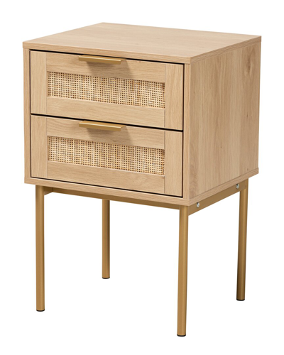 Design Details: Classic Design Receives A Glamorous Update With The Stylish And Efficient Dewitt End Table. This Japandi-Inspired Piece Is Comprised Of A Solid Metal Base Topped With A Sturdy Wood Frame. Two Drawers Offer Superb Storage Space For Household Essentials While Woven Rattan Drawer Fronts Lend A Charming, Rustic Vibe. The Dewitt Requires Assembly And Features Rounded, Minimalist Legs For Excellent Stability And Support In Stunning Design. Metal Drawer Handles Complement The Glamorous Nature Of The Piece, Making The Dewitt End Table A Distinguished Addition To Any Space. Due To The Nature Of The Natural Materials Used In This Product, It May Have Variations In Areas Such As, But Not Limited To, Color, Pattern, Grain And Texture. The Hair-Like Strands Of Rattan/Rattan-Fiber Are Common Due To Nature Of The Material. Color/Finish: Light Brown, Gold Measurements: 13.4In X 15.7In X 23.6In Overall: 15.7In X 13.4In X 23.6In Drawer: 13.1In X 10.6In X 3.1In Leg (S): 11.4In 2 Drawer (S) Particle Board, Powder-Coated Metal Iron, Natural Rattan, Mdf (Drawer Front) Wipe Clean Assembly Required Imported