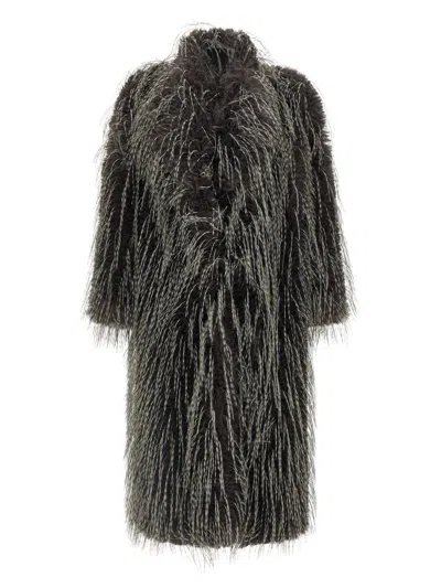 Long-haired faux fur, robe style with shawl neck, viscose lining, long sleeves