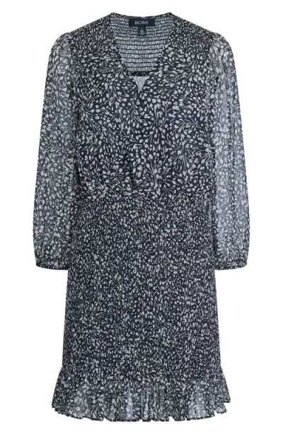 BCBG Floral Smocked Chiffon Minidress In Blue