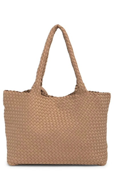 Woven Large Tote Bag & Pouch Set In Tan