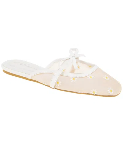 Introducing the BCBGeneration Hildana Flat, a stylish and comfortable addition to your shoe collection. This slip-on mule in White Daisy Mesh/Faux Leather features a moderately padded footbed and a man-made sole for all-day comfort. With a 0.3-inch heel, this versatile shoe is perfect for any occasion. Please Note - All Measurements Are Approximate And Were Taken From A Size 6; Slight Variations May Occur. Imported.