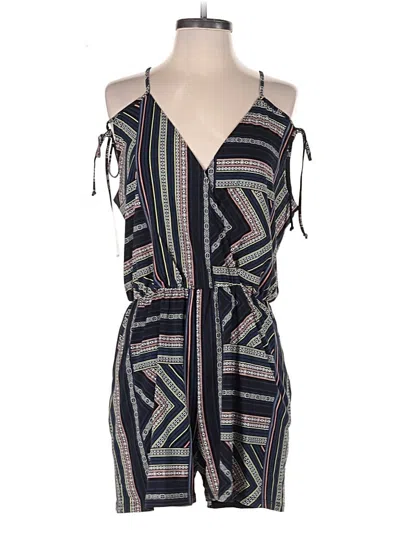 BCBGeneration Romper, Size: Medium. Item Details: Blue, Stripes Pattern, Plunge Neckline, Sleeveless, Women's Dresses, Polyester/Spandex