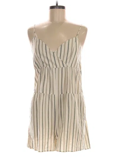 BCBGeneration Romper, Size: Medium. Item Details: Ivory, Stripes Pattern, V-Neck, Flared Leg, Sleeveless, Frayed Edges, Women's Dresses, Polyester/Cotton
