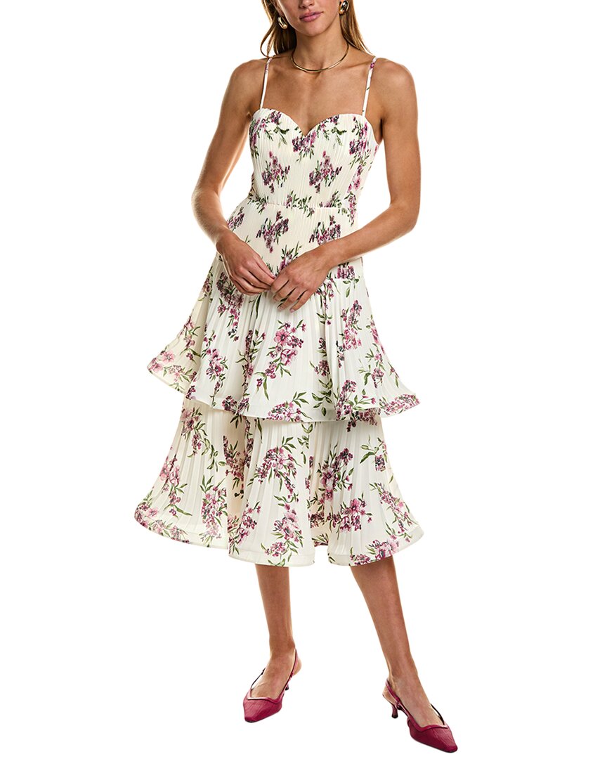 About The Brand: Modern Romantic Influences For Those With Good Style. Cocktail Dress In Floral Multicolor With Boned Bodice, Horse Hair At Hem, And Sunburst Pleating At Skirt Approximately 46 3.4In From Shoulder To Hem Side Zipper 100% Polyester Lining: 88% Polyester, 12% Spandex Dry Clean Only Imported