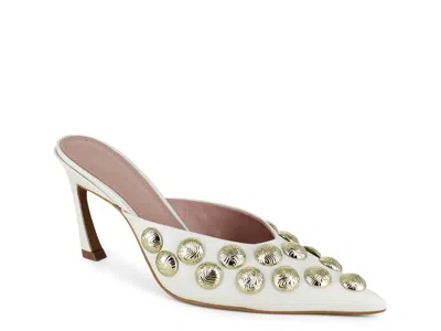 The Grimaldi mule from BCBGMaxazria brings a fresh edge to your wardrobe with its pointed-toe mule silhouette and eye-catching gold-tone embellishments. This slip-on style pairs effortlessly with everything from tailored pants to your favorite denim, making it a versatile choice for work, errands, or evening plans. The leather upper adds a refined touch, while the covered heel balances fashion-forward details with city-casual ease.