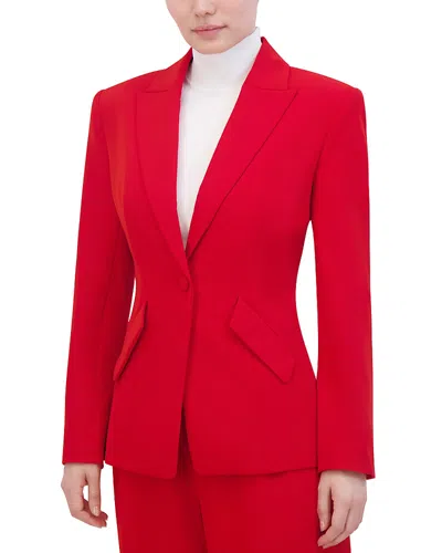 Elevate your professional wardrobe with the BCBGMAXAZRIA Slim Fit Jacket. This sophisticated blazer features a modern slim fit design in a vibrant salsa color, perfect for making a statement in the office or at a special event. The jacket also includes peak lapel, shoulder padding, two front flap pockets, button accents at cuffs, and a center vent at the back hem for added flair. Made from a blend of 88% polyester and 12% spandex, this jacket is both stylish and comfortable. The single-button closure adds a touch of elegance, while the 100% polyester lining ensures a smooth fit. Designed for the modern woman with good style, this BCBGMAXAZRIA Slim Fit Jacket is sure to become a favorite in your wardrobe. Dry clean only. Imported.