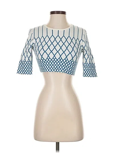BCBGMAXAZRIA Pullover Sweater, Size: Small. Item Details: Blue, Square Neckline, Short Sleeves, Women's Tops, Cotton/Nylon/Spandex