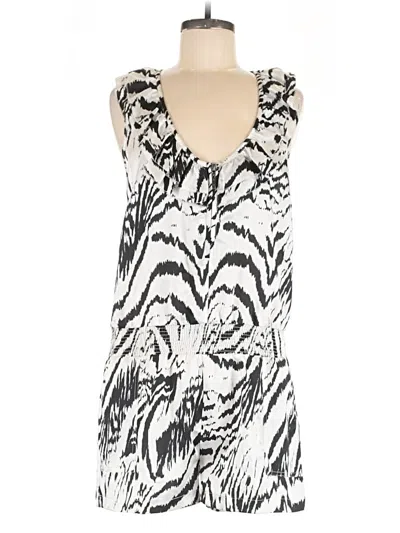 BCBGMAXAZRIA Romper, Size: Medium. Item Details: Ivory, Animal Print Pattern, V-Neck, Short Length, Low Rise, Sleeveless, Frills & Ruffles, Women's Dresses, Polyester/Spandex, Oversized