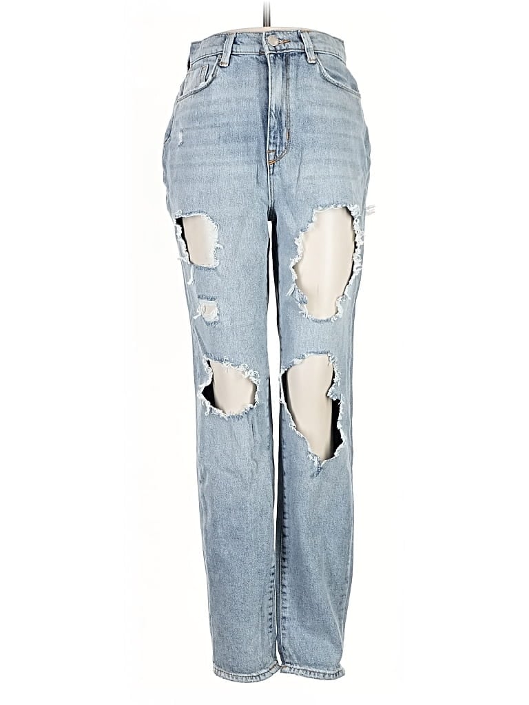 BDG Jeans, Size: 27. Item Details: Blue, Hearts Pattern, Distressed Wash, Boyfriend, Regular, High Rise, Women's Bottoms, 100% Cotton