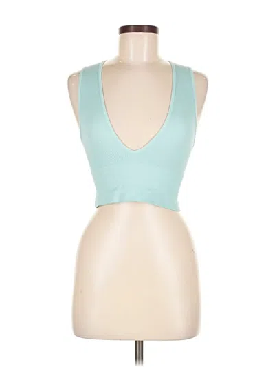 Pre-owned Tank Top Teal Solid Pattern Tops In Blue