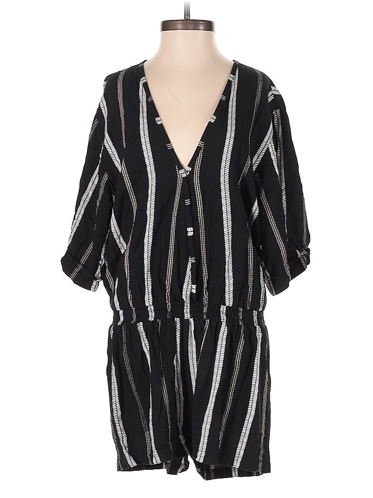 Beachgold Romper, Size: Small. Item Details: Black, Stripes Pattern, V Neck, 3/4 Sleeve, Frayed Edges, Women's Dresses