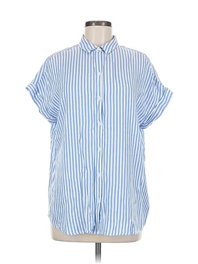 BeachLunchLounge Short Sleeve Button Down Shirt, Size: Medium. Item Details: Blue, Stripes Pattern, Collared Neckline, Short Sleeves, Women's Tops, Rayon/Lyocell