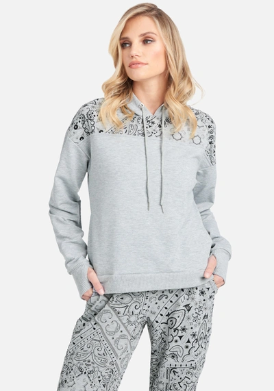 A cool print adorns this Bandana Print Jogger that will keep you cozy and stylish. Perfect for at-home lounging or on-the-go warmth. 50% Polyester. 50% Spandex Machine wash Imported | Bebe Women's Bandana Pullover Sweater, Size XL in Heather Grey Spandex