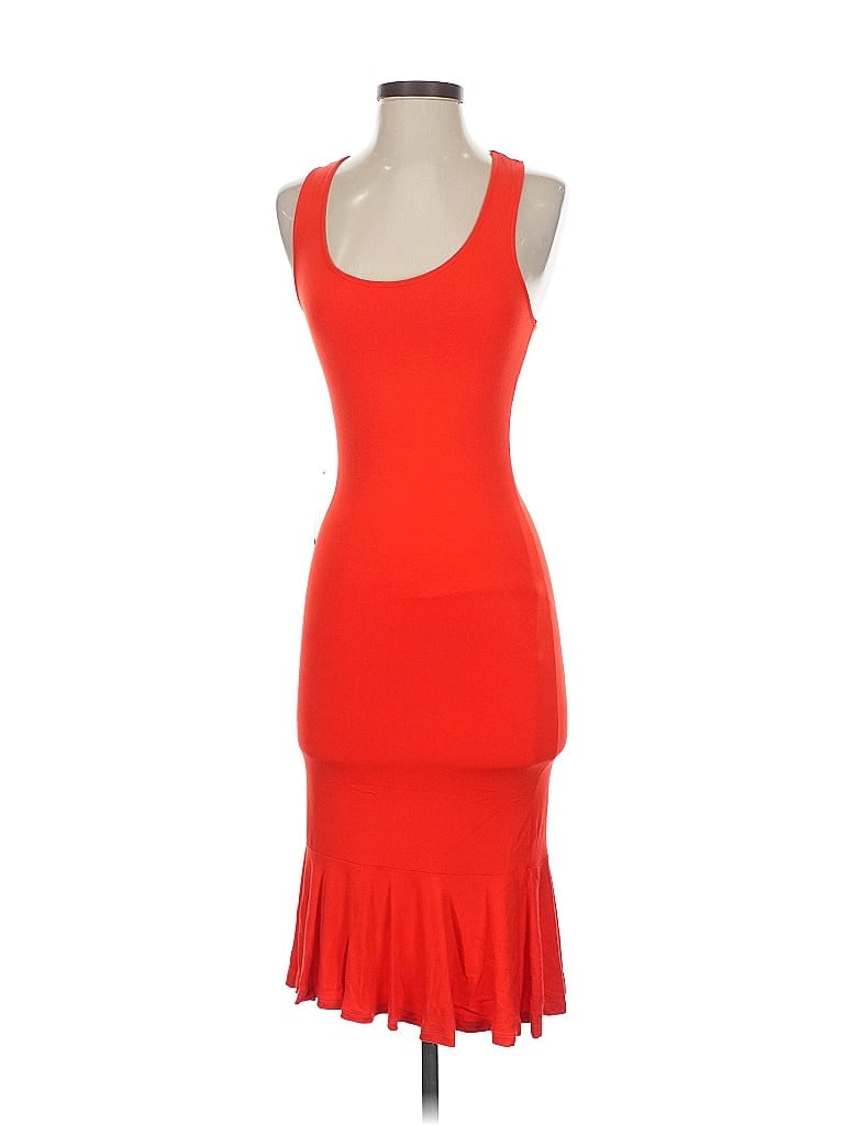 Bebe Cocktail Dress, Size: 2X-Small. Item Details: Orange, DropWaist, Scoop Neck, Midi/Calf Length, Sleeveless, Peplum, Women's Dresses, Rayon/Spandex