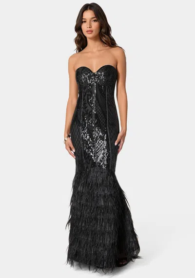 BEBE Feather Gown In Black