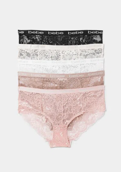 BEBE Five Pack Lace Hipster Set In Black Bone