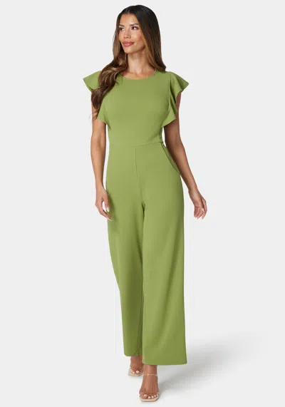 BEBE Flutter Sleeve Core Jumpsuit In Olive