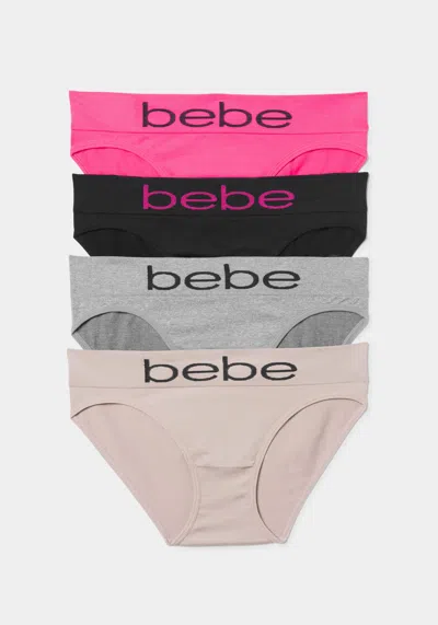Elevate your everyday comfort with our 4-pack seamless microfiber bikinis. Say goodbye to tags and hello to smooth, soft support. 90% Nylon 10% Spandex Machine wash cold. Imported | Bebe Women's Four Pack Seamless Microfiber Bikini Set, Size Large in Pink Glow Spandex/Nylon