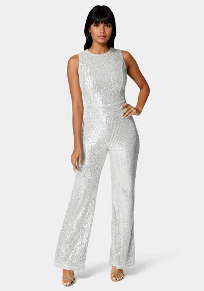Stand out in a shimmering jumpsuit. Its dazzling sequins and flattering fit capture attention effortlessly. Key Features: Fully Lined Zipper Closure At Back Novelty Stretch Sequin Wide Leg Material & Care: 95%Polyester 5% Elastane, Lining 100%Polyester Hand Wash Cold Separately, Do Not Bleach, Dry Flat, Cool Iron If Needed, Or Dry Clean Imported | Bebe Women's Sequin Jumpsuit, Size Medium in Silver Polyester/Elastane