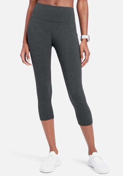 Keep it simple and chic in the Bebe Sport Basic Capri for lunging or lounging in style. It features a high-rise waist, open side pockets, and a cropped length. 92% Cotton, 8% Spandex Machine wash cold with like colors. Do not bleach. Tumble dry only. Do not iron. Imported | Women's Bebe Sport Basic Capri, Size XL in Charcoal Grey Cotton/Spandex
