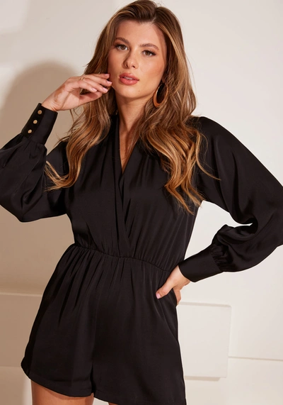 BEBE Surplice Drapey Romper In Black