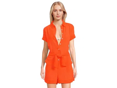 BECCA Cabana Textured Button Front Romper cover-up - Women's Jumpsuit & Rompers One Piece : Carrot : Go to explore the new world in the weekends wearing BECCA Cabana Textured Button Front Romper cover-up. It features V-neck collared shirt with short sleeves and rolled cuffs. A detachable sash belt, side pockets, and back yoke with pleat ensures right fit through body. A mid-thigh length bottom and button front closure in the shirt make it easy to wear any time. ; 96% polyester, 4% spandex. ; Hand wash only. ; Imported. Measurements: ; Inseam: 2 1 2 in ; Product measurements were taken using size LG. Please note that measurements may vary by size. ; If you're not fully satisfied with your purchase, you are welcome to return any unworn, unwashed items in the original packaging with tags and if applicable, the protective adhesive strip intact. Note: Briefs, swimsuits and bikini bottoms should be tried on over underwear, without removing the protective adhesive strip. Returns that fail to adhere to these guidelines may be rejected. | BECCA Cabana Textured Button Front Romper cover-up Women's Jumpsuit & Rompers One Piece Carrot : SM, Polyester/Spandex