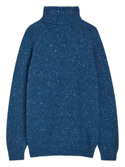 blue marl effect roll neck long sleeves ribbed hem ribbed cuffs