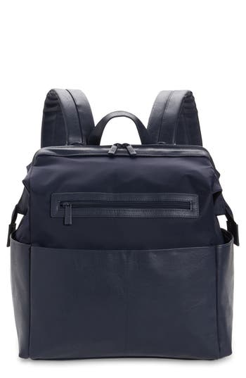 BEIS The Diaper Backpack in Navy. Faux leather with nylon twill and poly lining. Imported. Exterior and interior pockets. Signature trolley sleeve with option to use as slip pocket. D-rings to attach the stroller straps to. Includes: pacifier pouch, signature key leash, teething ring, portable changing pad & padded laptop pocket (laptop 13-15). Measures approx 12W x 15.5H x 7.5D. BEIS-WY150. BACKPACK. After countless trips and Shaycations, Shay Mitchell realized that she wanted to create amazing, affordable pieces for travelers like herself who are inspired to seek new places, meet new people, and share the world. BEIS - pronounced base - began with the promise to give everyone the opportunity to pack up their stuff and hit the road with bags and accessories that wouldn't break the bank. From the gym to Jaipur, BEIS will never compromise on functionality or looking selfie-ready cool.