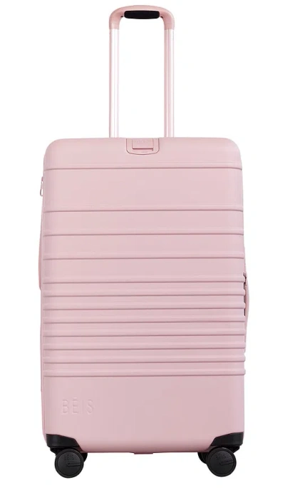 BEIS The Medium Check-In Roller in Pink. BEIS The Medium Check-In Roller in Pink. 100% virgin PolyCarbonate exterior. Made in China. Hinomoto 360 degree wheels Extendable BIS logo-ed trolley handle with soft hand cushion. Top handle carry Butterfly opening. Polyester lined with soft brushed hand feel U-zip flap with vegan leather trim. Detachable compression flap with U-zip pocket and mesh pocket Four point compression straps. TSA locks Separate pouch set for dirty clothes, shoes, under garments, and damp clothing. Measures approx 16 W x 28.25 H x 10 D Luggage Weight : 10.2lbs. BEIS-WY198. BEIS322173. After countless trips and Shaycations, Shay Mitchell realized that she wanted to create amazing, affordable pieces for travelers like herself who are inspired to seek new places, meet new people, and share the world. BEIS - pronounced base - began with the promise to give everyone the opportunity to pack up their stuff and hit the road with bags and accessories that wouldn't break the bank. From the gym to Jaipur, BEIS will never compromise on functionality or looking selfie-ready cool.