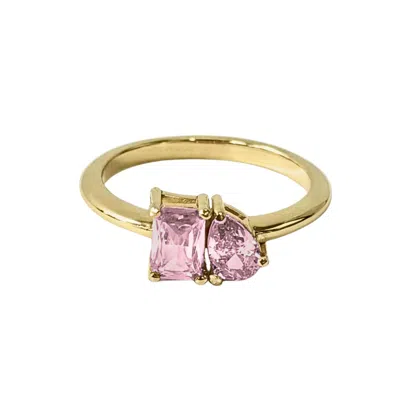 BELINDA JEWELZ Women's Toi Et Moi Pink Topaz Birthstone Ring In Gold