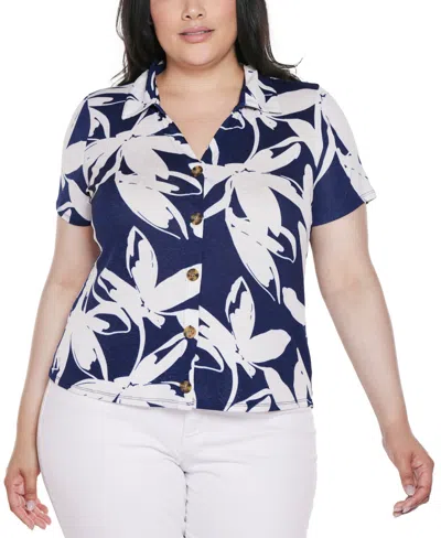 BELLDINI Plus Size Floral Button-front Knit Top In Multi