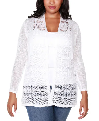 Plus Size Open-front Pointelle-trim Cardigan Sweater In White