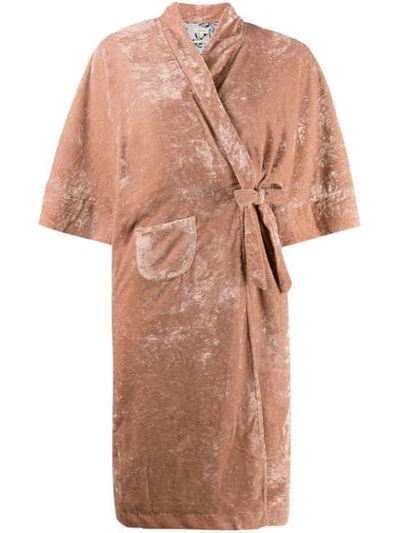 Nude distressed robe-coat from bellerose featuring a wrap style front, a belted waist, distressed effects, patch pockets and a full lining.